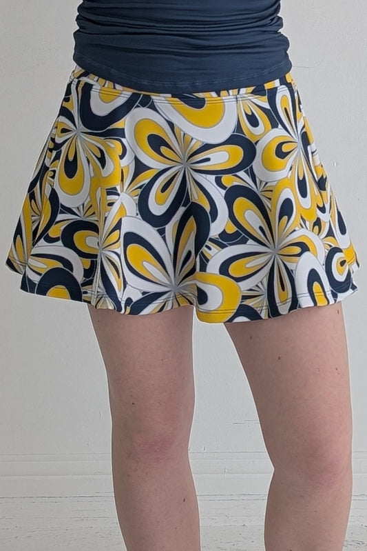 Groovy Flowers brings vintage floral energy with a fearless twist, think '70s sunshine meets modern sideline. It's playful, punchy, and made for the girls who show up loud, proud, and ready to cheer. Perfect for dancing in the stands or spinning through halftime.