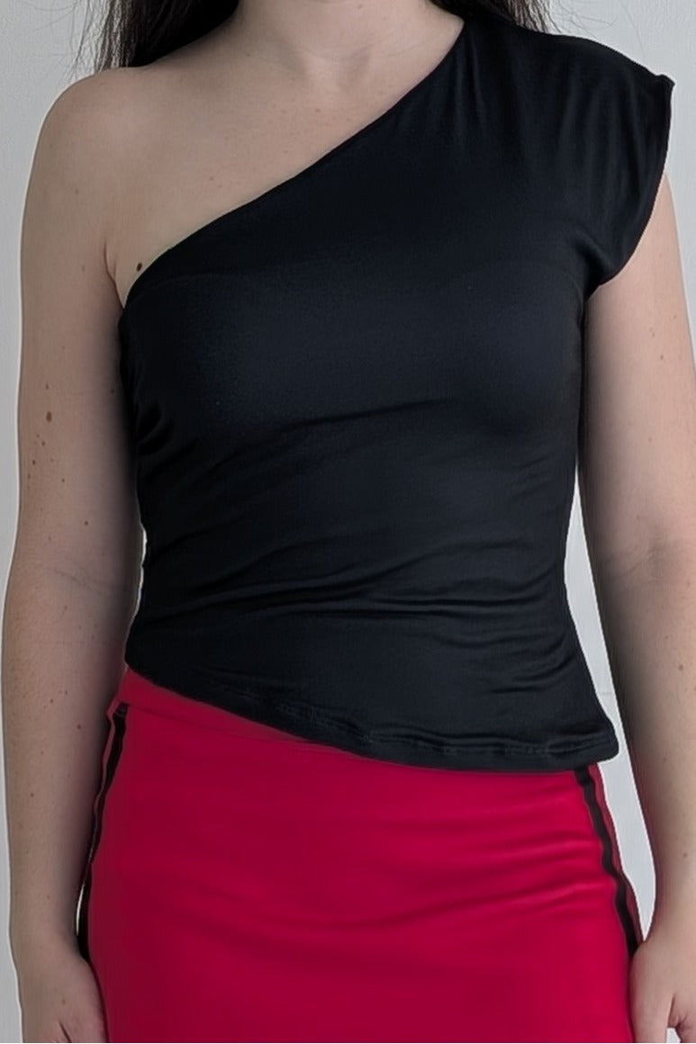 Elevate your style with our Abigail Top, a one-shoulder asymmetrical top. It’s all about turning heads while keeping it casual. Featuring a sleek silhouette that angles across the collarbone, it creates a flattering neckline with just the right touch of edge. Made of soft stretch fabric and pairs perfectly with our Charlotte skirt that moves with you - from campus to concerts.